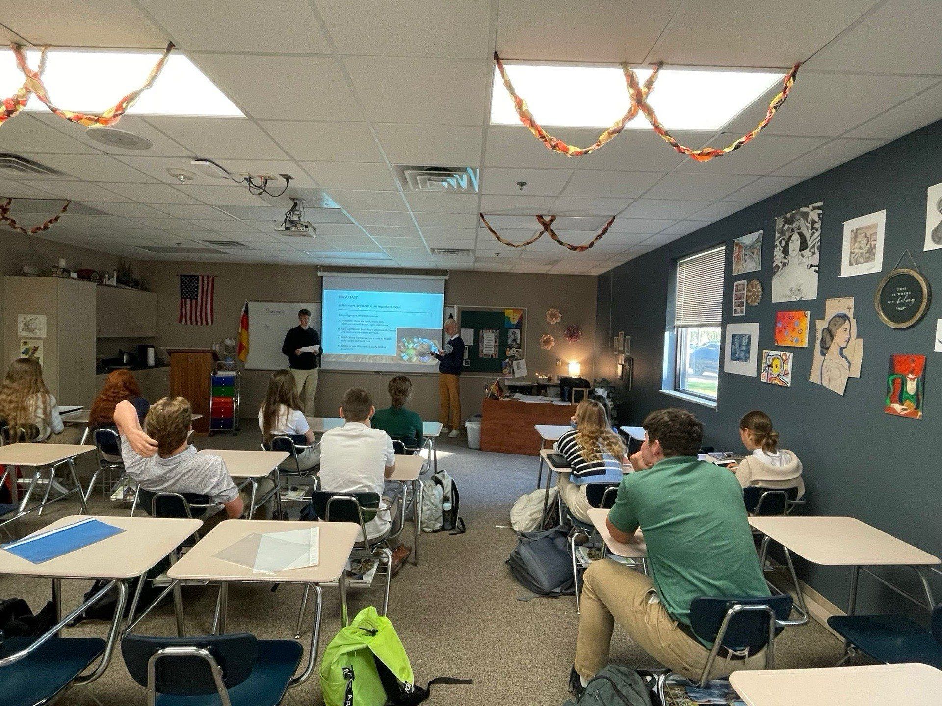 Heute hatten wir einen spannenden Schultag! Zuerst waren wir im Kochunterricht, wo die Amerikaner gebacken haben. Wir durften dabei zusehen und auch probieren – super lecker! Danach ging es in den Geschichtsunterricht, der sehr interessant und offen gestaltet war. Zum Abschluss waren wir im Theologieunterricht, wo wir gemeinsam gebetet und lustige christliche Kahoot-Spiele gespielt haben. Ein wirklich abwechslungsreicher Tag! (Noah)