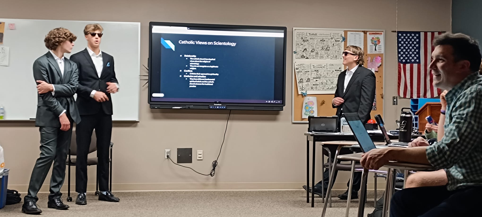 In dieser Theologiestunde gab es einen Vortrag über die verschiedenen Weltreligionen und ein paar Kulte, wie z.B. Buddhismus, Islam, KKK usw. In diesem Vortrag wurde eine kurze Erklärung gegeben, die oft einfach nur ein YouTube-Video war, zur Religion, zur katholischen Sicht auf diese Religion oder diesen Kult, und es gab auch immer wieder Fragen zu Gott in unserem Leben.